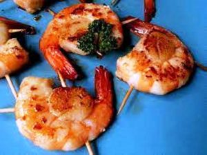 Les ingrédients utlisés pour réaliser la recette sont : langoustines, noix de St Jacques, huile d’arachide, gousses de vanille, beurre pommade, fruits de la passion…