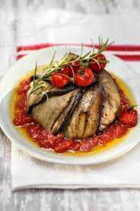 Les ingrédients utlisés pour réaliser la recette sont : aubergines, œufs, crème fraîche, huile d’olive, gousses d’ail, branches de thym, sel et poivre…