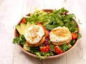 Les ingrédients utlisés pour réaliser la recette sont : salade verte, tomates cerise, fromages de chèvre style rocamadour ou picodon, feta, cerneaux de noix, farine, chapelure, oeuf, huile d’olive, vinaigre de noix, moutarde à l’ancienne, paprika, herbes de Provence, huile de friture, huile de friture, sel fin, poivre du moulin…