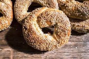 Il est plus grand que les bagels standard et est tissé à partir de deux brins de pâte au lieu d’un seul. Avant d’être cuit, il est bouilli et peut être saupoudré de graines de pavot ou de sésame, d’herbes, d’épices, de fromage, de sel ou d’oignons. Il a un goût sucré et une texture dense et moelleuse.