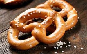 Le brezel ou bretzel est un type de pain typique très apprécié des populations d’origine teutonique, et donc répandu surtout en Allemagne, vous le connaissez bien si vous avez été au moins une fois à l’oktoberfest (fête de la bière), c’est une pâtisserie en forme de nœud et recouverte d’éclats de gros sel.