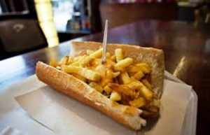 La mitraillette comme son nom pourrait l’indiquer, la version plus furieuse du pistolet. Sorte de revisite de notre Américain, elle voit dans une demie-baguette s’amalgamer une viande cuite, des frites et beaucoup (beaucoup) de sauce. On dit qu’elle doit toujours dépasser les 1000 calories…
