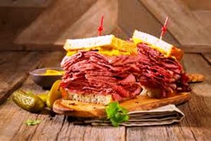 Le pastrami on rye est un sandwich copieux et savoureux, typique de la gastronomie new-yorkaise. Il est composé de fines tranches de pastrami (viande de bœuf fumée et épicée), empilées généreusement sur du pain de seigle.
