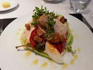Chaque jour le semainier annonce une entrée et un plat du jour : lundi : saumon en tartare façon Thaï, et blanquette de veau avec purée maison ; mardi : oeuf bio mollet avec lard croustillant, et poulet rôti frites maison ; mercredi : terrine de campagne, et Parmentier de canard avec salade verte ; jeudi : salade d’haricots verts et champignons, et boeuf bourguignon purée maison ; vendredi : velouté de potiron, et pavé de saumon Label Rouge plus purée carottes.