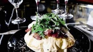 En entrée, le tartare de boeuf (26€), soigneusement assaisonné et relevé, s’accompagne de pommes gaufrettes, tandis que la fine tartelette de champignons sylvestres (24€) nous fait définitivement entrer dans la saison automnale, pour notre plus grand bonheur.
