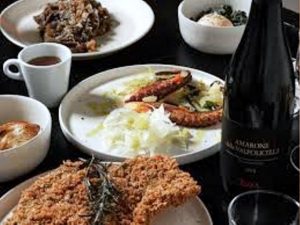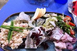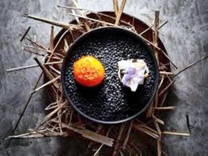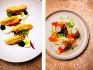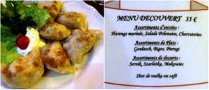 Exemple de repas : Blinis de sarrasin, truite des Pyrénées, chou-rave, sauce au lait ribot (blinis en forme de sphère). Chlodnik, soupe de betterave glacée, Concombre, Aneth (agréable et bien assaisonnée)