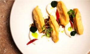 Pierogis Russes, Raviolis aux pommes de terre, oignon grillé, crème aigre. Roladka, Roulée de poulette jaune, carotte, raisins, amandes. Sernik, cheesecake polonais, rhubarbe, vanille…