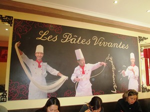 En me baladant dans le quartier, lorsque je suis  passé devant la devanture du restaurant Les Pâtes Vivantes 46 rue du Faubourg Montmartre  75009 Paris mon attention a été attirée par  un homme qui jonglait  avec de la pâte, c’était remarquable.