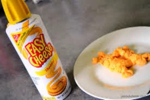 Oui, le fromage en spray ça existe, et c’est américain et on le trouve en import. Le terme de spray est un peu usurpé dans le sens où il ne sort pas comme le ferait un spray de produit ménager. Il s’agit néanmoins d’une bombonne d’un produit qui essaie d’avoir le goût de fromage, qui est semi-liquide, qui ne se réfrigère pas, qui n’a pas de date de péremption. C’est surtout composé d’huile, de produits chimiques et de très peu de fromage, à tel point que c’est indiqué sur l’emballage que le produit contient un peu de fromage.