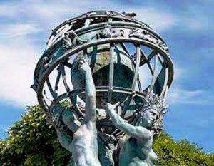 Puis, notre regard se lève vers son globe orné des signes du Zodiaque, porté par des femmes nues symbolisant l’Asie, l’Afrique, l’Amérique et l’Europe. Des références aux voyages et au mouvement qui cristallisent l’hommage à Marco Polo et Robert Cavelier de la Salle que constitue cette œuvre à plusieurs mains de la fin du XIXème siècle.