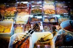 Sous les anciens crocs de boucher accrochés au plafond, une ribambelle de plats de viande et de légumes entièrement cuisinés par Kim Jinshu varient, chaque jour, selon ses inspirations.