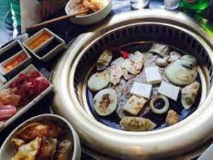 Pour les modiques sommes de 14,50€ le midi et 17,50€ le soir, tu pourras déguster un barbecue coréen… à volonté ! Oui, vous avez bien lu. Vous pourrez vous servir et vous resservir du bœuf, poulet, porc, seiche, crevettes, courgettes, poivrons, champignons, oignons mais aussi des crudités en illimité.