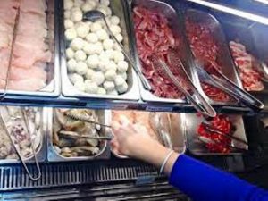A table, les chefs apportent tous les ingrédients crus nécessaires à l’élaboration de ce plat réconfortant, puis vous laissent cuire les viandes et les légumes à votre guise grâce au barbecue électrique situé au centre de la table !