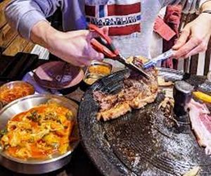 Mais vous pouvez également goûter leur poulet frit à l’ail, leur jajangmyeon (nouilles avec pâte de sauce soja noire, courgettes et pommes de terre) ou leur seolleongtang (soupe aux os de bœuf). Le tout dans une ambiance familiale et conviviale.