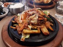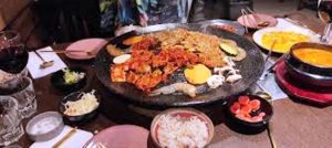 Après des bibimbaps en entrée, on savoure des recettes très épicées servies dans des assiettes en pierre très chaudes (attention les doigts).
