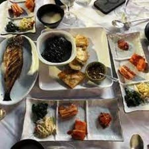 La carte annonce les raviolis grillés, les oeufs de merlan, le tartare de boeuf, la salade aux méduses, le crabe cru à la sauce piquante, les beignets de crevettes, le barbecue coréen, le Bibimpap, les champignons coréens, la soupe de pâté de soja, la soupe aux choux, ou les nouilles piquantes.