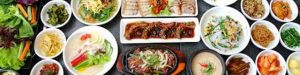 Bibimbap, bossam, japchae, jjamppong, poulet frit et autres bulgogi sont autant de plats savoureux, raffinés et équilibrés grâce aux légumes marinés qui les composent. Tous s’accompagnent de banchan, les traditionnelles petites assiettes de mets froids, comme des racines de lotus, des radis marinés, un bol de riz blanc, sans oublier l’incontournable kimchi, ce chou fermenté et pimenté ; la base de tout bon repas coréen.