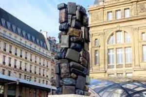 Deux œuvres d’art accumulations d’Arman hautes de six mètres ont été placées dans les cours de la gare St- Lazare: Consigne à vie dans la cour de Rome et l’Heure de tous dans la cour du Havre.