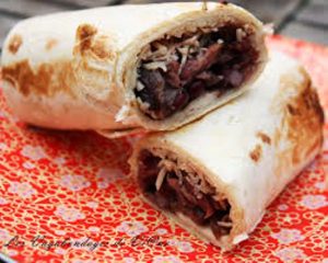 Les ingrédients utilisés pour réaliser cette recette sont : onglet de bœuf, oignon rouge, petite boîte de haricots rouges, fromage râpé, grandes tortillas…