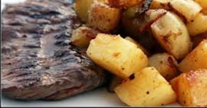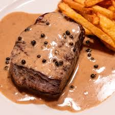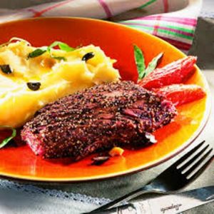 Onglet de bœuf sauce au poivre avec ses pommes de terre au four