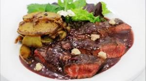 Les ingrédients utilisés pour réaliser cette recette sont : onglets de bœuf, pommes de terre à chair ferme, sirop de baies de Tasmanie « Cette fantastique baie possède une odeur rappelant celle de la myrte et de petites baies rouges aux notes sucrées et légèrement poivrées. Nous avons développé un process spécial d’extraction pour ne garder que les notes fruitées de la baie, et obtenir ainsi un sirop suave et non piquant unique en son genre. » dixit : Maison Thiercelin, poivre rouge Pondichéry Maison Thiercelin, sel, persil ciselé, beurre, huile d’olive…