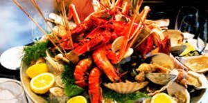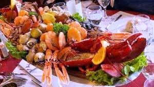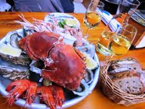 On se délecte avec les huîtres creuses et plates, on déguste un homard (tout juste sorti du vivier dans le restaurant) et on décortique les coquillages et autres fruits de mer.