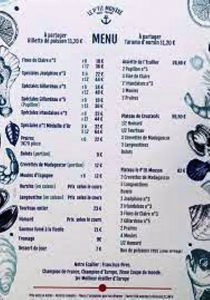 À la carte seront proposés des bulots, mais aussi des huîtres naturelles et primées, des rillettes de poisson, du tourteau, des planches de poisson fumé, des crevettes grises et roses, des palourdes, du tarama…