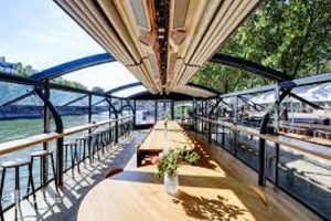 Sur cette terrasse de 200 m2, dans une ambiance Cap Ferret, on se laisse bercer par le doux clapotis de l’eau. Quant aux marins, ils pourront se laisser tenter par un apéro sur les petits bateaux qui emmènent faire une mini-croisière sur la Seine. Yallah !