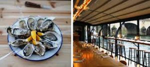 À bord d’une péniche amarrée sur le quai de l’Hôtel de Ville au pied du pont Marie, on sirote un cocktail tout en se délectant d’huîtres, bulots et autres fruits de mer !