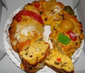 Le bolo rei est en forme de couronne, composé de fruits secs et garni de fruits cristallisés.