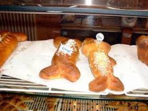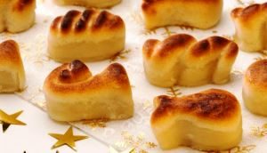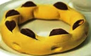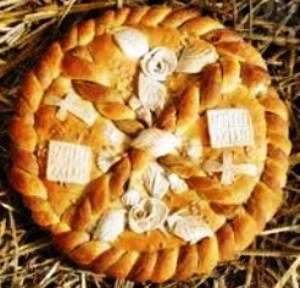 En Bulgarie, on prépare un pain, le Bogova pita de forme ronde, en croix, en rosace, ou encore en cercle et comme dans la légende de Peau d’âne on y cache… non pas un anneau, mais une pièce de monnaie qui assurera le bonheur pour un an à la personne qui la trouvera.