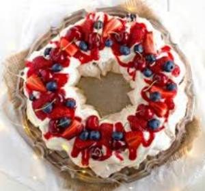 Le gâteau de Noël des Australiens et des Néo-zélandais c’est le Christmas Pavlova, derrière ce nom se cache une danseuse russe du début du 20e siècle, et une meringue aérienne croustillante et moelleuse, garnie d’une chantilly légère, parsemée de fruits frais, visiblement inspiré par la gracieuse ballerine.