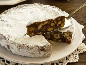 En Toscane et à Sienne, le repas se finira par un morceau de gâteau de Noël italien, le panforte, une sorte de pain aromatique aux fruits d’hiver. Ce dessert italien de Noël qui remonte au Moyen-âge, c’est un gâteau dense, riche et parfumé.