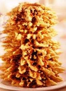 Les ingrédients nécessaires pour réaliser le sari bourma sont : feuilles de pâte filo, noix,  cannelle, beurre doux clarifié,  pistaches, pour le sirop de sucre : eau, sucre,  eau de fleur d’oranger, citron…
