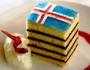 En Islande, au moment de Noël, on déguste le vínarterta, également connu sous le nom de Randalín, est un gâteau multicouche composé de couches alternées de biscuits et de confitures de prunes et d’amandes et de cardamome, la confiture comprenant généralement des épices telles que la cannelle, la vanille, le clou de girofle et la cardamome.