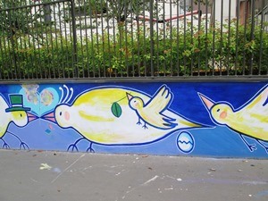 Voici ma récolte de photos d’œuvres de Street Art : murs peints, mosaïque, dessins, affiches peintes , pochoirs…