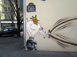 Dernièrement, j’ai fait une longue promenade au gré de mes pas pour observer des oeuvres de Street Art, j’ai emprunté plusieurs artères : rue René Goscinny, rue des Frigos, rue du Chevaleret, rue Pinel, rue Pierre Gourdault, rue Jeanne d’Arc, rue Jenner, rue Bobillot , Passage du Moulin des Prés, rue de la Glacière 75013…., j’ai pu prendre plusieurs photos, à découvrir :