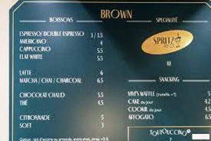 Tarifs : Cafés et latte : 3€ – 6,5€