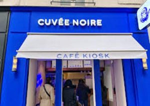 Difficile de passer devant sa devanture bleu électrique sans la remarquer : Cuvée noire a investi le quartier de la gare Saint-Lazare début 2023.