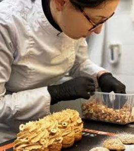 Ainsi dans les marqueurs classiques du dessert, la pâte à chou doit être pochée en rond, avec un trou central, avant d’être ouverte en deux dans la hauteur post-cuisson, puis d’être garnie avec une crème mousseline pralinée. Pour rappel, la crème mousseline est un mélange de crème pâtissière et de beurre.