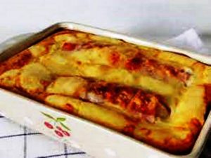 Gratin de pommes de terre et tranches de magret de canard fumé