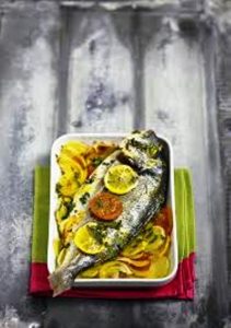Les divers ingrédients utilisés pour réussir la recette sont : loup de Méditerranée très frais, gousses d’ail, fenouils, céleri nouveau, carottes, brocoli, artichauts poivrade, courgettes violon, tentacules de poulpe cuits, tomates cerise…
