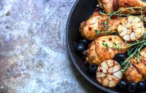 Les divers ingrédients utilisés pour réussir la recette sont : poulet fermier préparé, 40 gousses d’ail, brins de thym, feuilles de laurier, branche de romarin, huile d’olive, poivre du moulin…