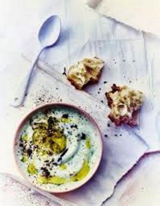 Les divers ingrédients utilisés pour réussir la recette sont : concombre, brins de menthe, gousses d’ail rôties, yaourts grecs au lait de brebis, zaatar (mélange de sumac, graines de sésame et de thym), huile d’olive, vinaigre, sel fin…