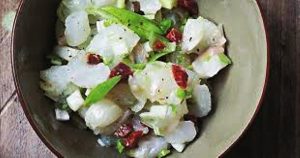 Plat traditionnel d’Amérique du Sud, cette entrée se cuisine avec des filets de rascasse crus, assaisonnés de câpres, anchois et, jus de citrons.