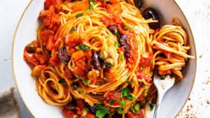 Pourquoi puttanesca ? Selon la légende populaire napolitaine, les prostituées préparaient cette recette de spaghettis facile et rapide, adaptée à une journée bien remplie.