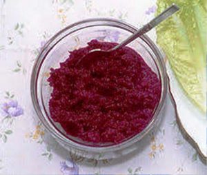 Les ingrédients utilisés pour réaliser cette recette sont : betteraves, lavées et parées, raifort, vinaigre de cidre de pomme, sucre, sel…