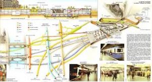 La naissance de Châtelet – Les Halles a pu se faire dans le sillage du déménagement des Halles centrales, le marché de vente en gros des produits alimentaires, à Rungis en 1970. Le pôle ferroviaire a été alors creusé, puis un centre commercial a été construit au-dessus.