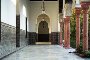 Inspiré de l’Alhambra de Grenade, le patio est entouré d’arcades sculptées. La salle des prières est une étape obligatoire de la visite pour sa décoration et ses magnifiques tapis.