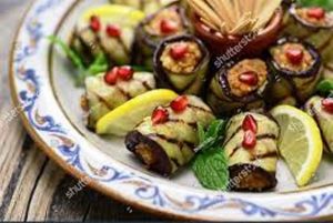 Les ingrédients utilisés pour réaliser cette recette sont : aubergines, huile d’olive, cerneaux de noix, gousse d’ail, coriandre fraîche, khmeli suneli (), sel, vinaigre blanc, eau, graines de grenade…